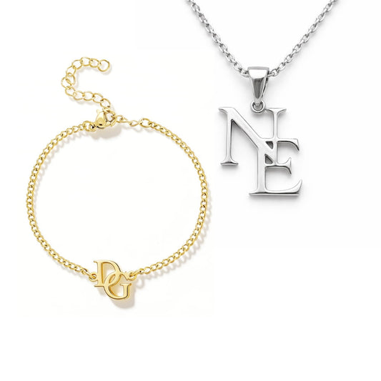 Set d’initiales entrelacées – Collier et bracelet personnalisés