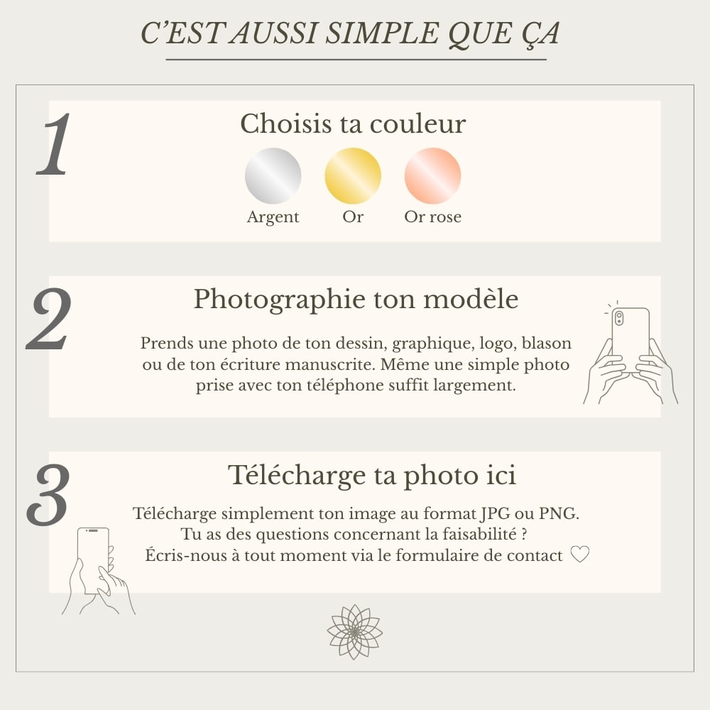 Transforme les dessins de tes enfants en un bijou personnalisé unique. Télécharge une photo du dessin et nos designers créeront un collier ou un porte-clés selon la créativité de tes enfants. Parfait pour les mères, les pères, les grands-parents. Ce bijou personnalisé deviendra à coup sûr l'un de tes préférés.