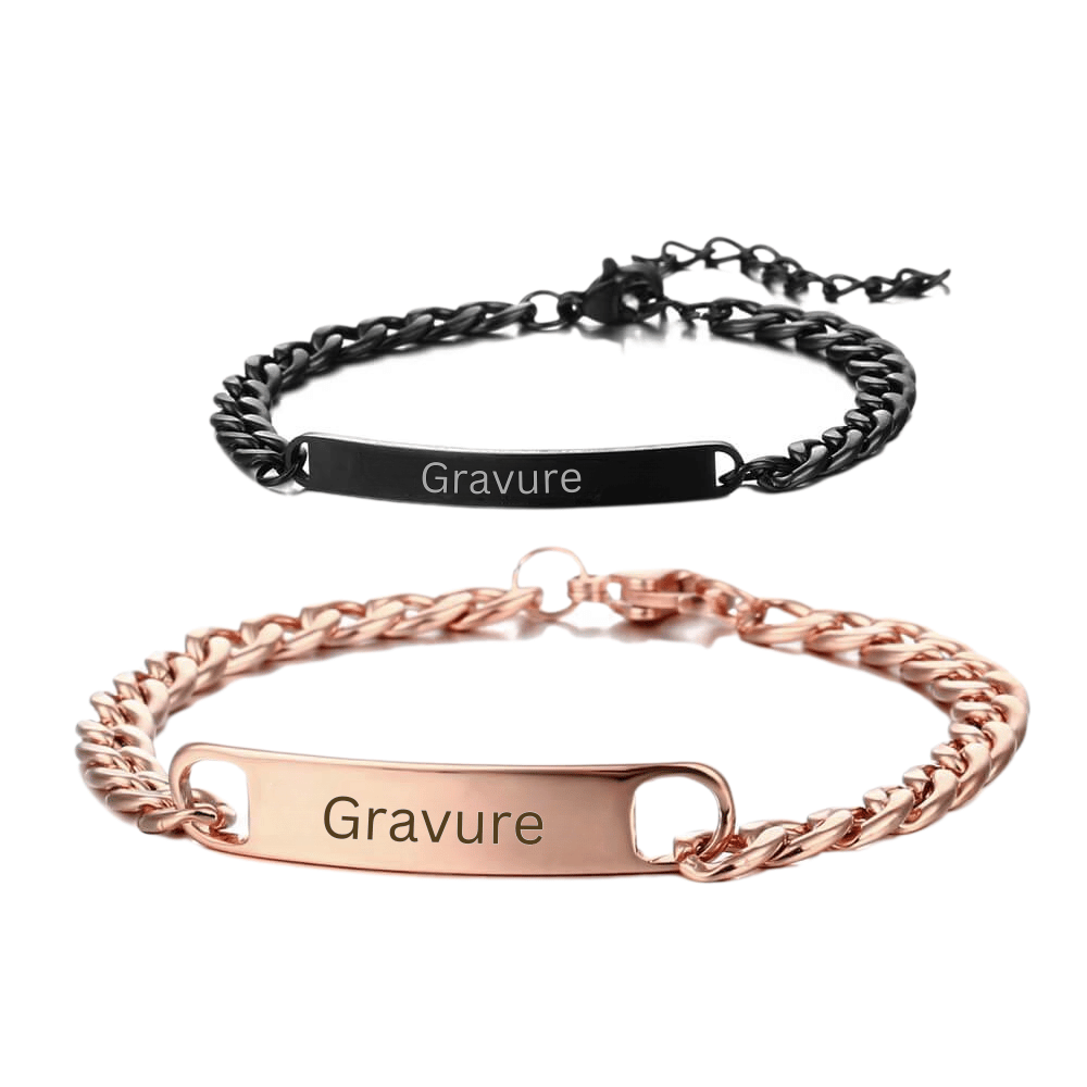 Nous te présentons notre nouveau set de bracelets pour couple LOANYA - deux bracelets partenaires au look élégant et stylé pour toi et la personne que tu aimes. Choisis un bracelet pour chacune des deux personnes dans la couleur de ton choix - rose, or, argent ou noir - et décore les deux bracelets avec la gravure de ton choix. Quelle que soit l'occasion, le set de bracelets pour couple LOANYA est le cadeau parfait pour toi et la personne que tu aimes.
